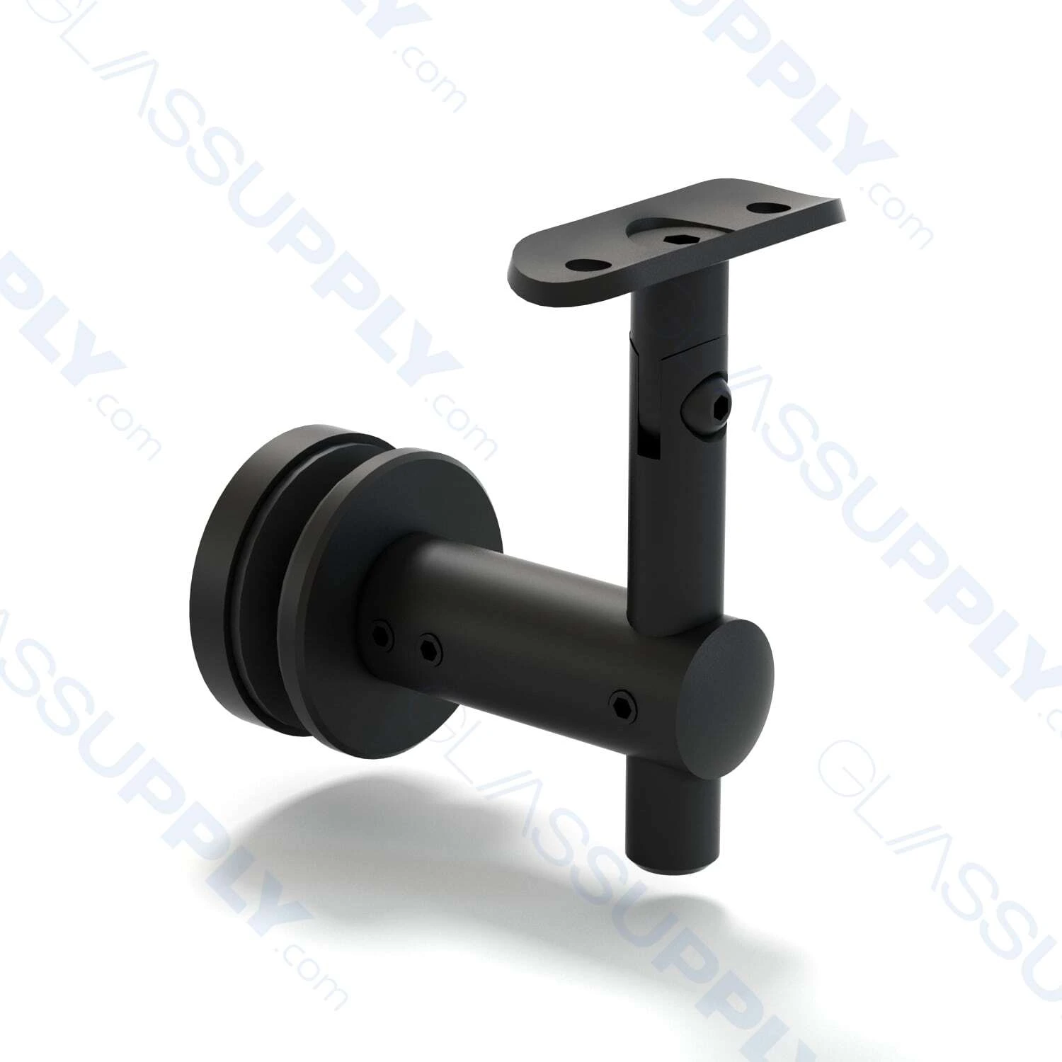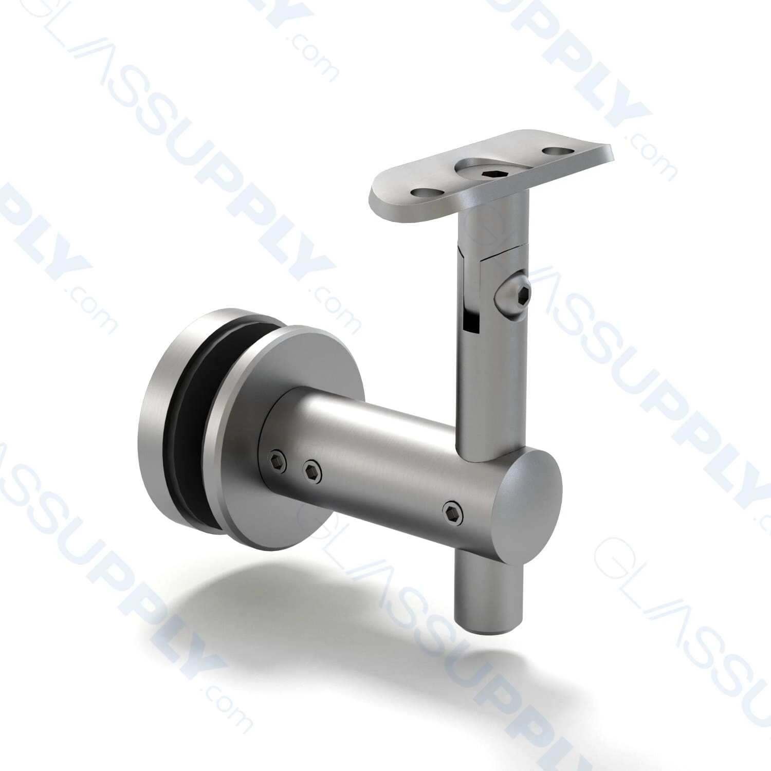 The Handrail Glass Mounted Adjustable Projection Bracket – 2 1/16″ to 4 3/4″ features an Adjustable arm Projection, which allows for easy customization of the bracket’s projection distance from the glass panel to the handrail.
