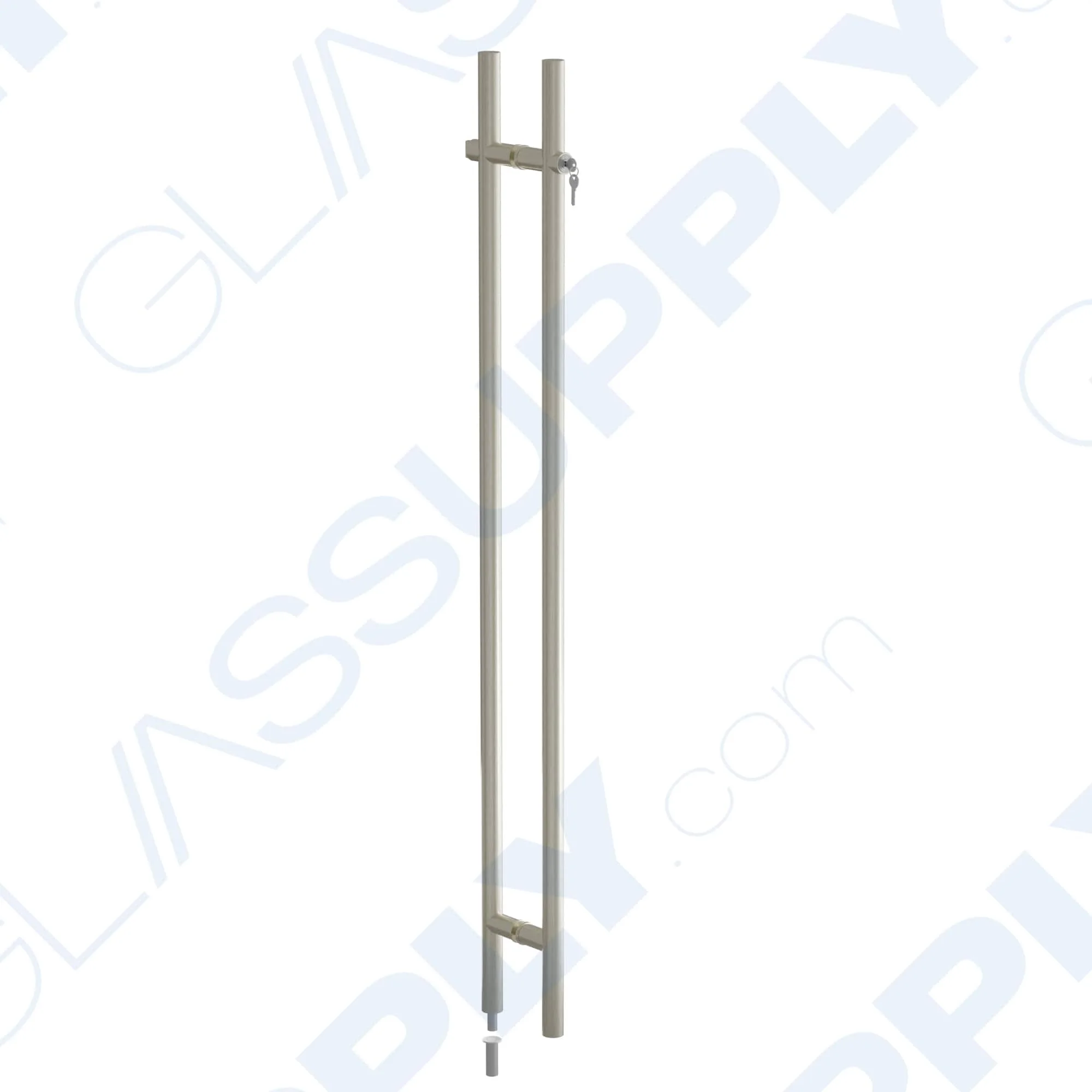 The 60” Back-to-Back Ladder Handle with Floor Lock – 1-3/8″ (35mm) Diameter provides a secure and concealed locking solution for frameless glass doors, featuring a fully integrated deadbolt mechanism that locks directly into the floor. The lock operates at a comfortable height of 54″ above the floor, eliminating the need to bend down and making it child proof. This handle is ideal for modern interior glass doors in commercial and residential spaces and heavy duty applications.