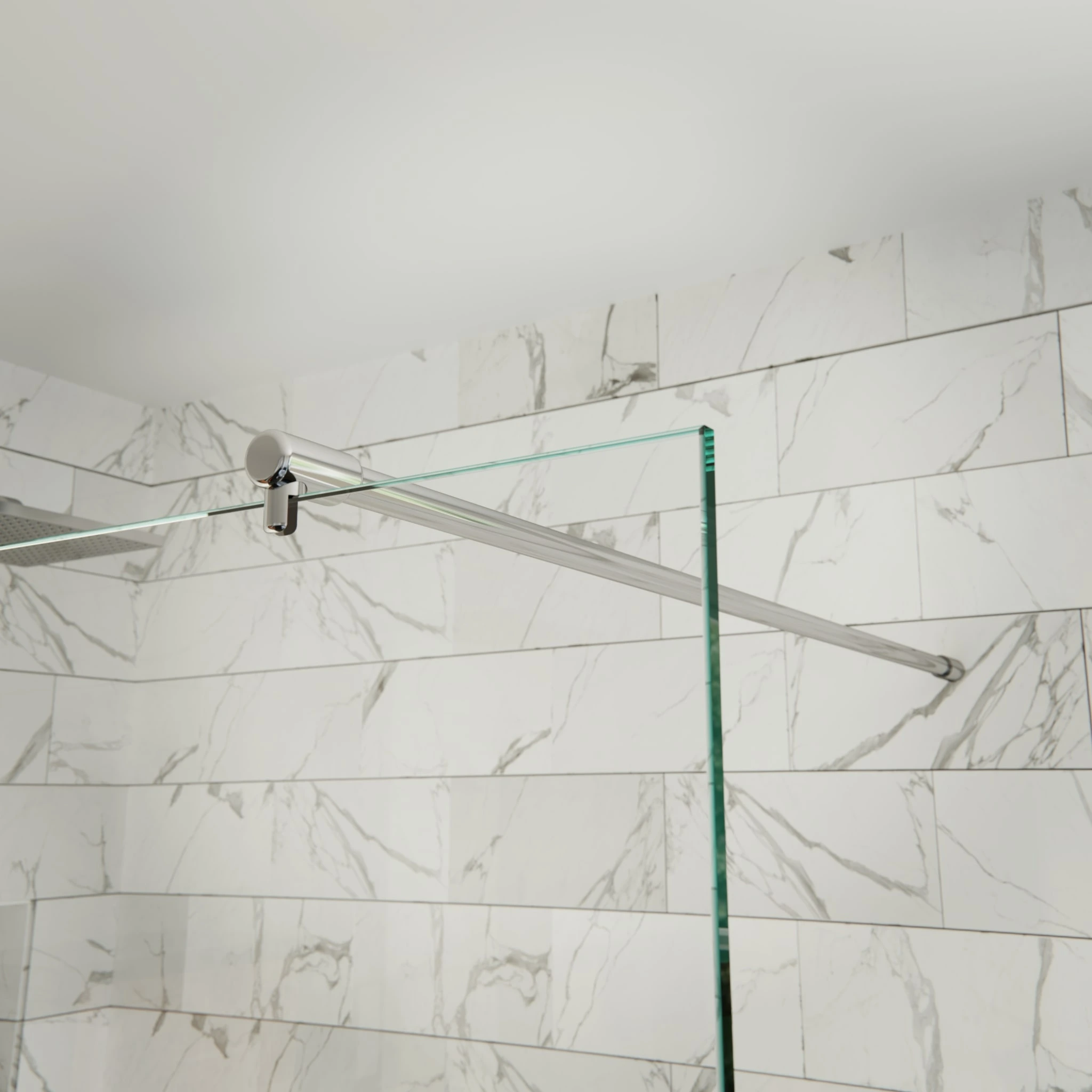 The 90° Wall Mount Support Bar is designed to provide additional stability to fixed glass panels in shower enclosures or other similar installations. It can be mounted at a straight, 90-degree angle on a wall and is suitable for use with 5/16” (8 mm) to 1/2” (12 mm) thick glass panels.