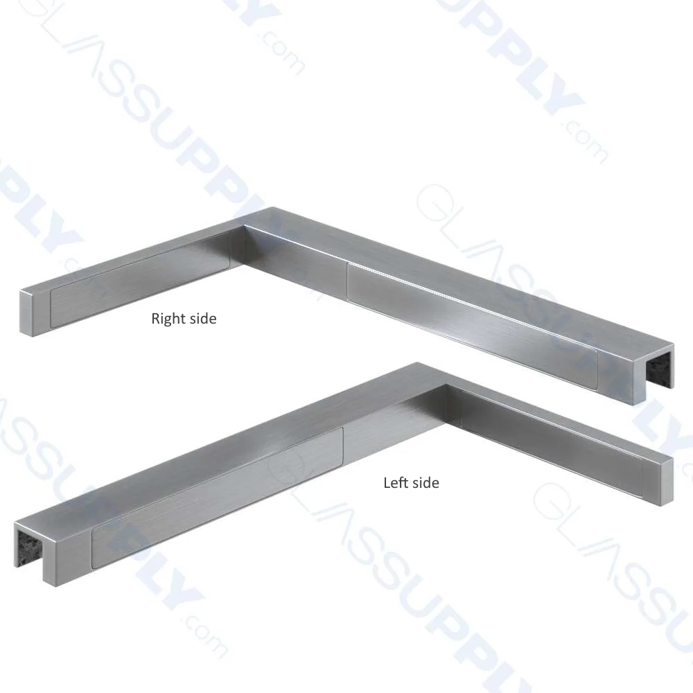 The L Shaped Top Mounted Support Bar is designed to provide additional stability to fixed glass panels in shower enclosures or other similar installations. It can be mounted at a 90-degree angle to an adjacent wall and is suitable for use with 5/16” (8 mm) to 1/2” (12 mm) thick glass panels.
