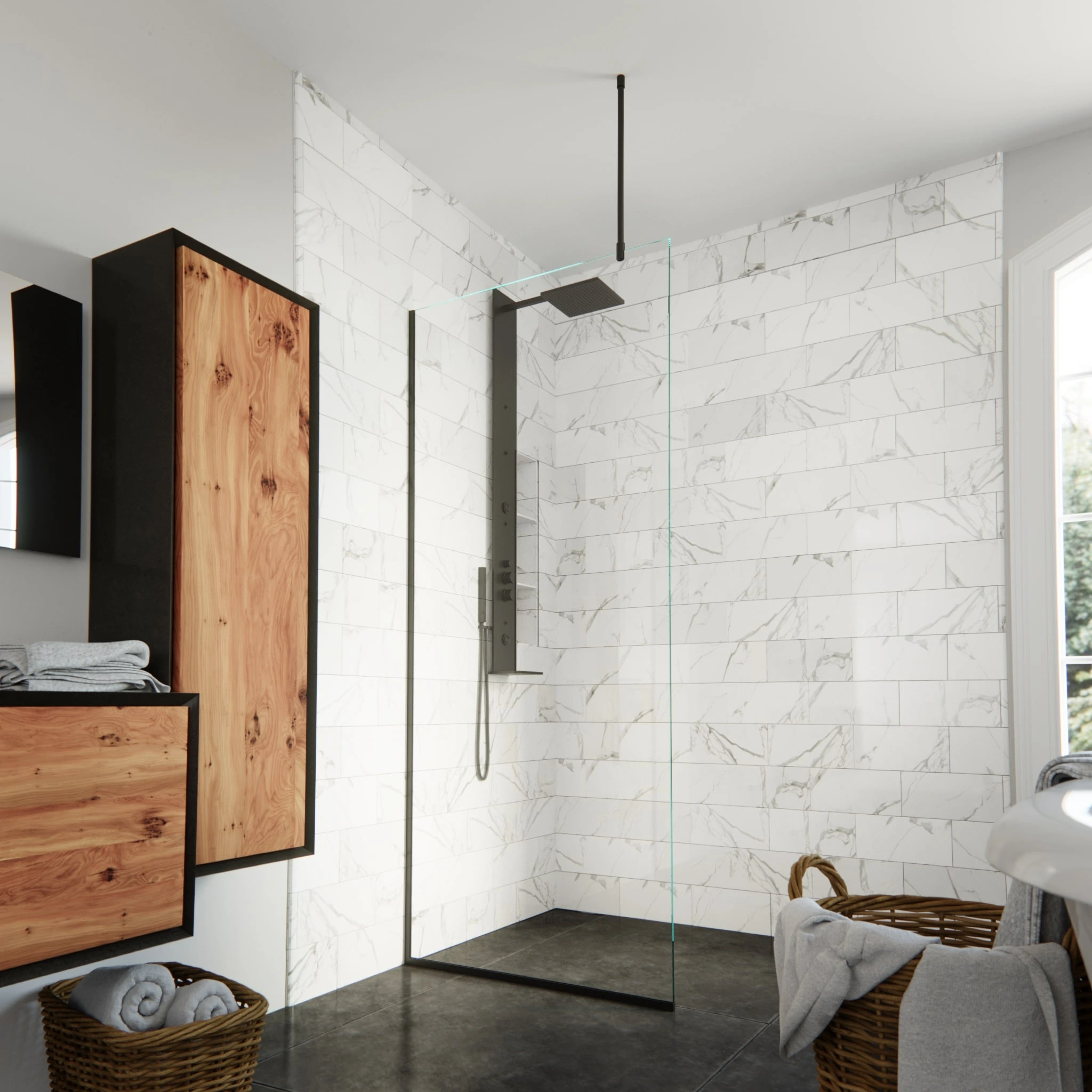The Vertical – Ceiling Support Bar is designed to provide additional stability to fixed glass panels in shower enclosures or other similar installations. It can be mounted at a straight, 90-degree angle on a ceiling and is suitable for use with 5/16” (8 mm) to 1/2” (12 mm) thick glass panels.